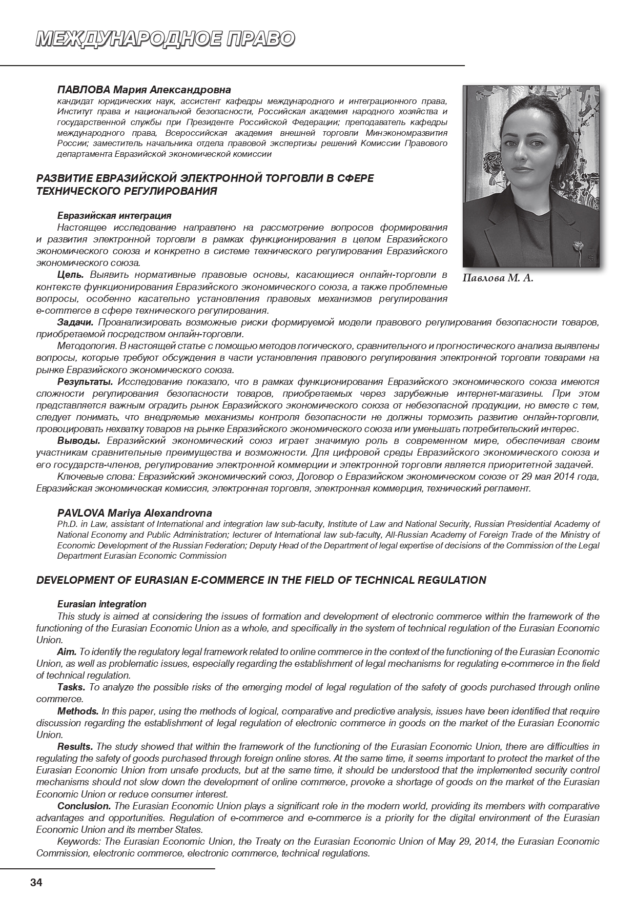 В журнале «Евразийский юридический журнал», № 11 (210) за 2025 г. (входит в перечень изданий, рецензируемых ВАК России), опубликована научная статья ассистента кафедры международного и интеграционного права Павловой М.А. «Развитие евразийской электронной торговли в сфере технического регулирования».