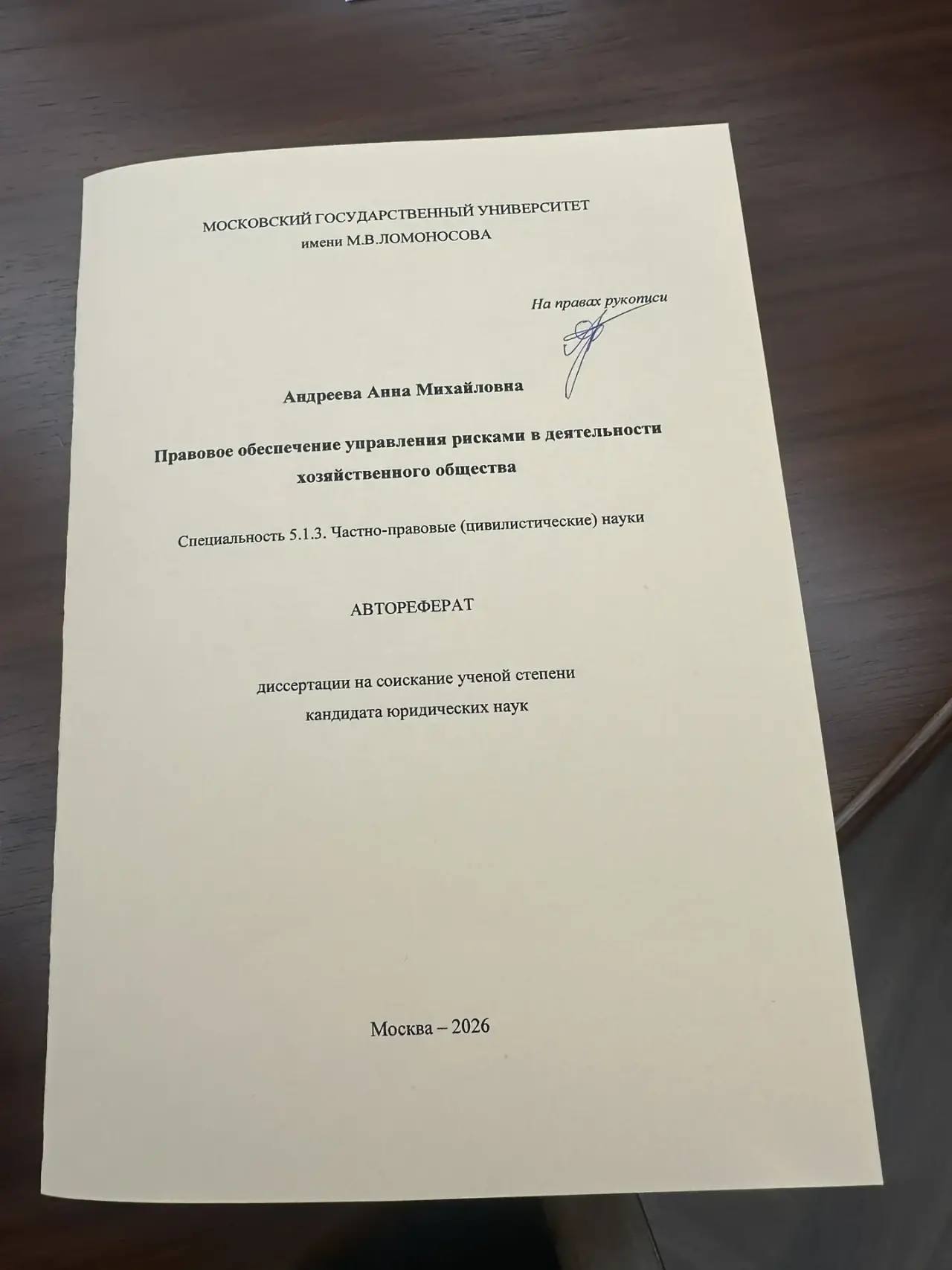 В Московском государственном университете имени М.В. Ломоносова состоялась защита кандидатской диссертации по специальности 5.1.3 «Частно-правовые (цивилистические) науки».